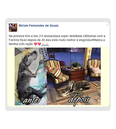O produto não só ajudou no comportamento do animal, mas também trouxe benefícios ao equilíbrio do organismo, garantindo mais saúde e qualidade de vida.
